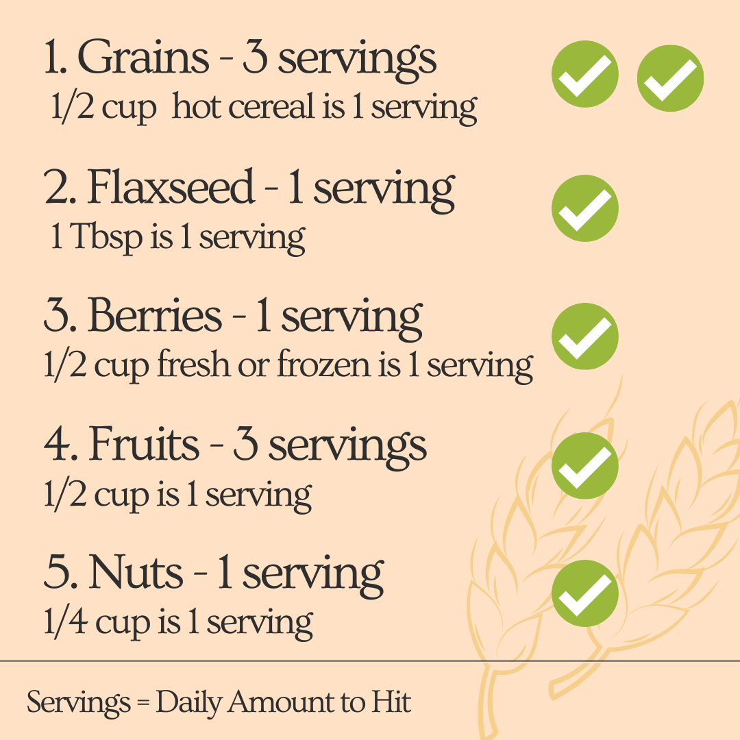 The only food types that did not hit their daily recommended serving amount in my oatmeal were: